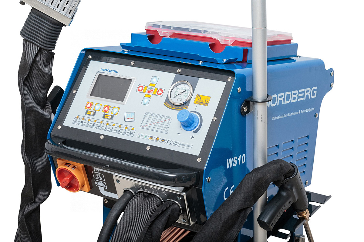Профессиональный аппарат контактной сварки, споттер NORDBERG WS10 позволяет проводить как стандартные для споттера работы, такие как приварка различных вытяжных шайб и проволоки, наплавка и прогрев металла, так и с уверенностью производить одностороннюю точечную сварку. Благодаря силе тока в 9000А и сварочным клещам с пневматическим сжатием стало возможно производить двухстороннюю точечную сварку, по качеству не уступающую «конвейерной». Наличие микропроцессорной системы управления и большого информативного дисплея делает настройку режимов работы максимально точной, удобной и понятной.