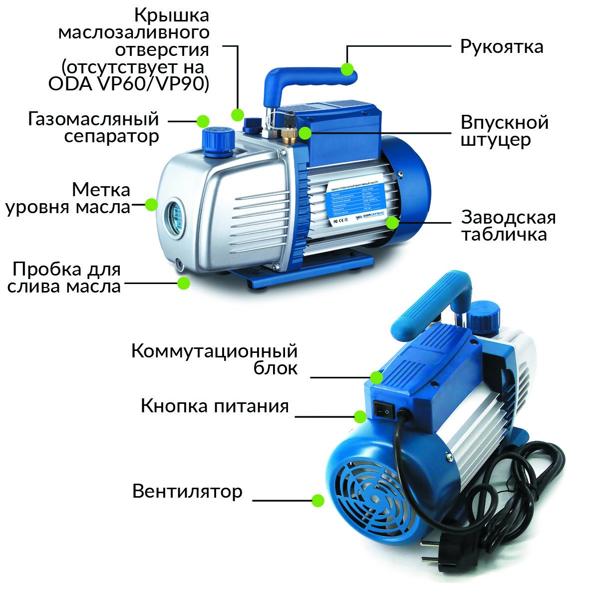 ODA Сервис ODA-2VP180 – это производительный двухступенчатый вакуумный насос, который предназначен для работы с герметичными системами, требующими глубокого вакуума. С высокой скоростью откачки 180 л/мин, он обеспечивает быстрый и качественный процесс удаления влаги из систем кондиционирования, холодильного оборудования, вакуумных камер и лабораторных установок.